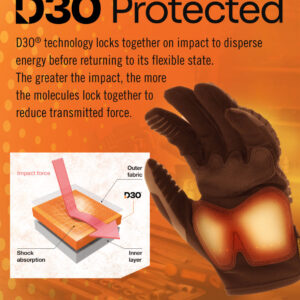 - 2mm D3O® impact and vibration dissipating palm padding is encased by double-stitched grip material.