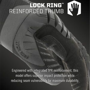 - Welded TPR knuckle design integrates a Lock Ring™ pattern around the thumb increasing durability in a high wear area and without the need for vulnerable stitching.